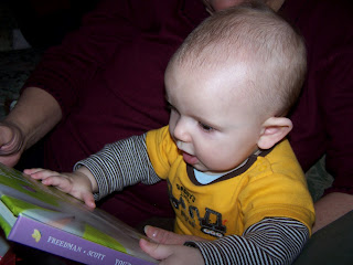 Nolan is really getting attached this few weeks to the point that when I walk out of the room he bursts into tears. He will not sit with anyone else but me after he wakes up (not even Brian which isn't good). After being up for a bit he does fine with Brian but when he sits with others I have to be in the room with him. Spoiled? Maybe. Oh well!